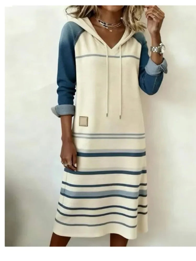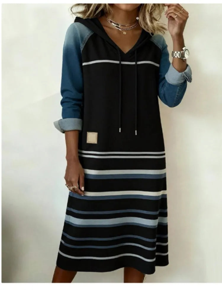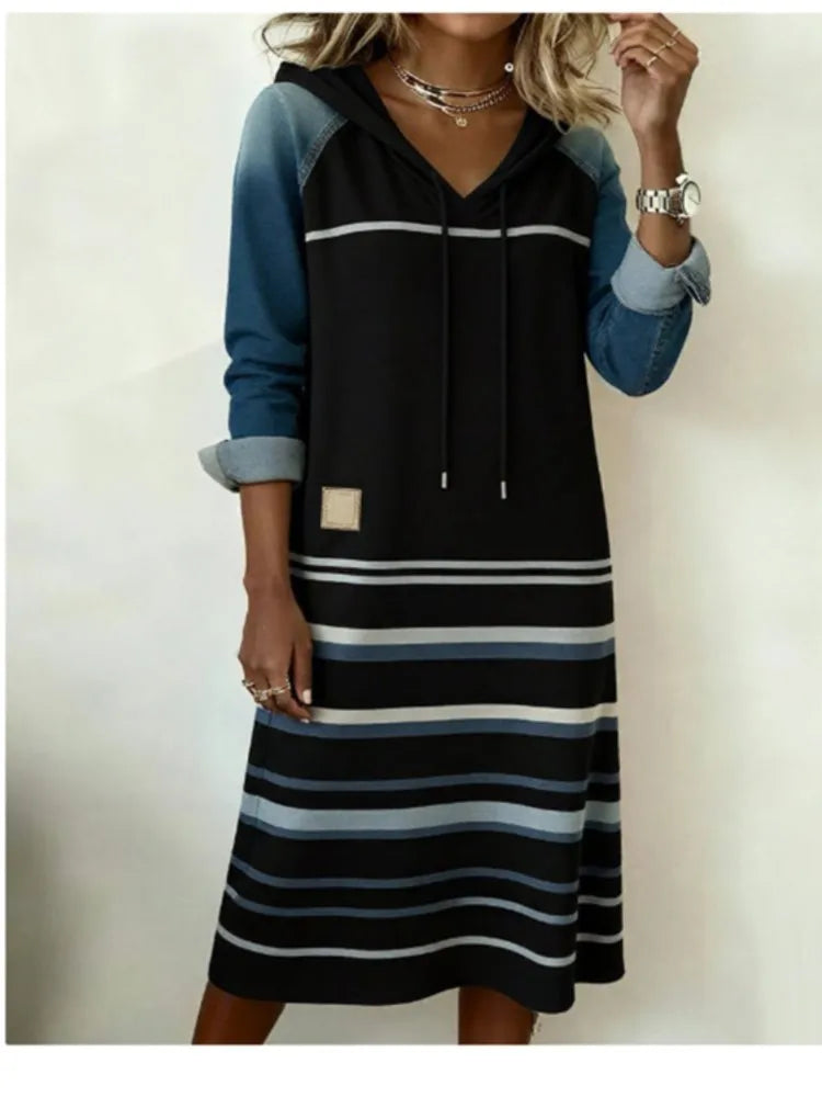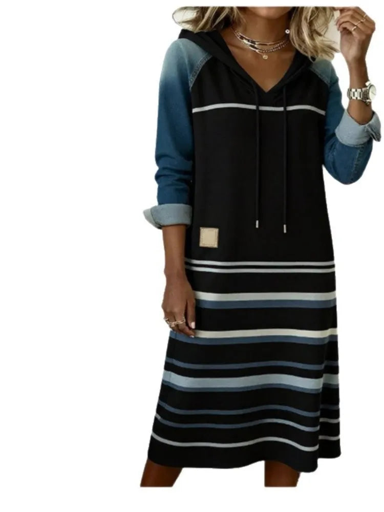 Hayden Rosemary™ | Fashion Denim Color Block Hoodie Dress