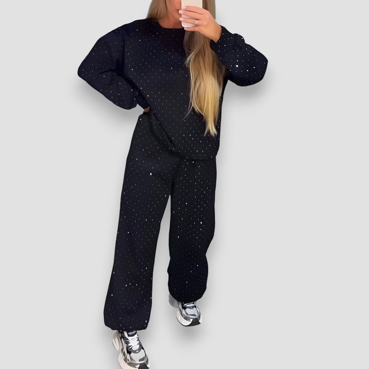 Shine with confidence and comfort in the Hayden Stella™ | Lounge Set where luxurious ease meets statement-making style. Designed for women who love to sparkle effortlessly, this set blends relaxed comfort with a touch of glam — perfect for cozy nights in or stylish days out.